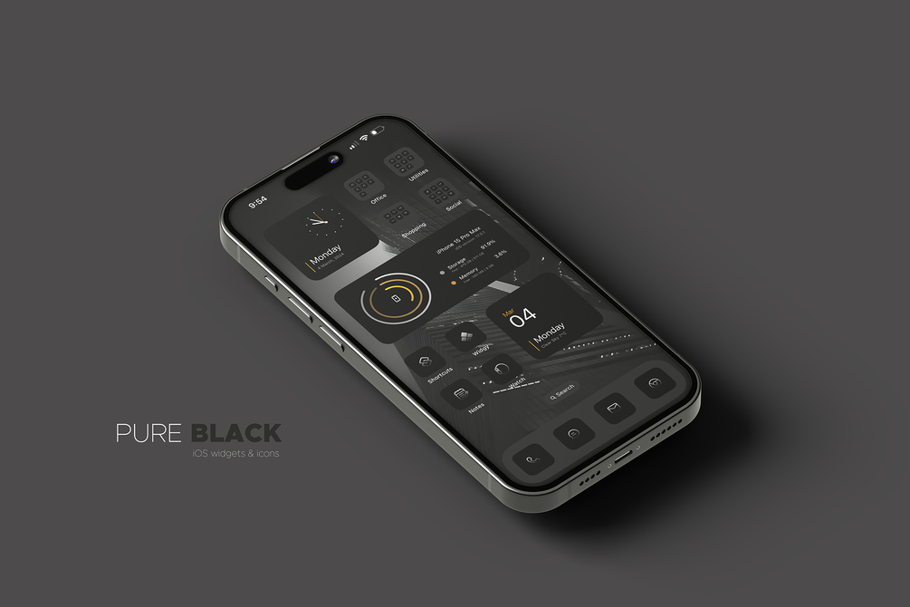 Pure black widgets and icons for your iPhone Home Screen.